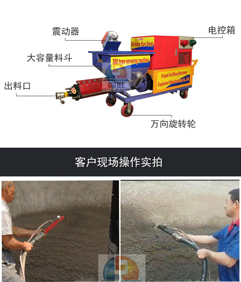 砂浆喷涂机是我公司近年来不断开发研制的新一代砂浆泵输送喷涂的新产品,本机具有工作压力大、流量大、效率高、操作方便、安全可靠、移动灵活、结构紧凑、易于保修保养等特点。