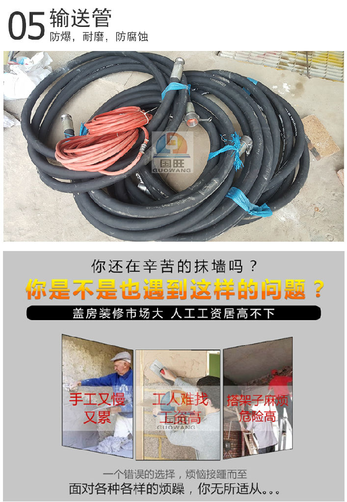 1、 在建筑工程中,用于水平垂直输送砂浆或大面积喷涂。