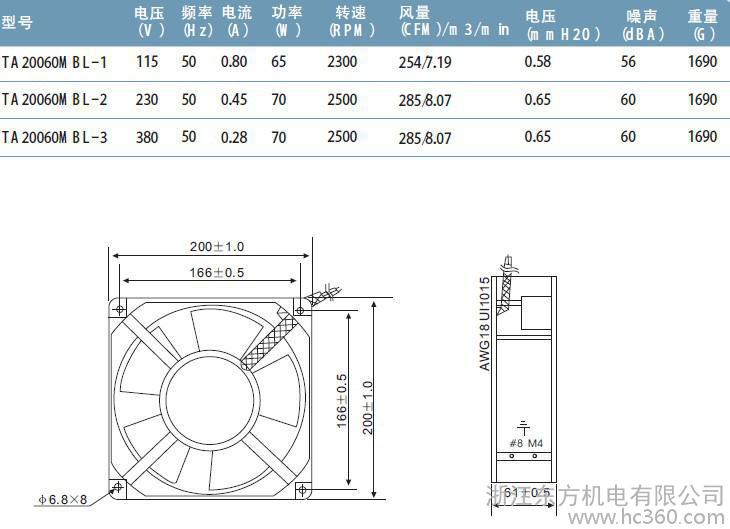 供应CNDFTA20060 双滚珠轴承轴流风机