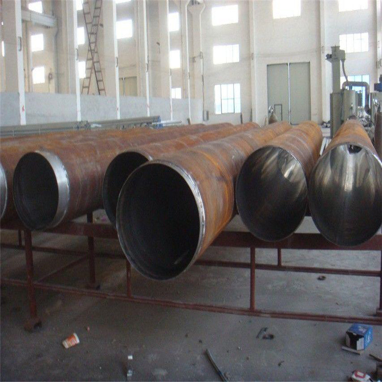 内衬不锈钢复合钢管中的外层钢管是采用按“GB/T3091-2001低压流体输送用焊接钢管”生产的焊接钢管、或按“GB/T8163-1999输送流体用无缝钢管”生产的无缝钢管、或按“SY/T5037-2000生产的螺旋缝埋弧焊钢管”生产的螺旋缝焊管。输送石油天然气的内衬不锈钢复合钢管的外层钢管,是按GB/T9711-1997“石油天然气工业输送钢管交货技术条件”进行生产的。焊接钢管或无缝钢管的抗拉强度都不小于335MPa,伸长率不小于15%,输送天然气和石油的内衬不锈钢复合钢管的外层钢管伸长率达到25%,钢管都经过3.0MPa以上的水压试验,并通过标准规定的弯曲试验或压扁试验。按GB9711生产的输气、输油钢管,还要进行断裂韧性试验、金相检验、拉伸试验和较高强度的耐压试验。