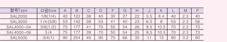 | 颜色分类 | SAL2000-01G1/8 SAL2000-02G1/4 SAL3000-03G3/8 SAL4000-04G1/2 SAL4000-06G3/4 SAL5000-06G3/4 SAL5000-10G1 SAL3000-02G1/4 |