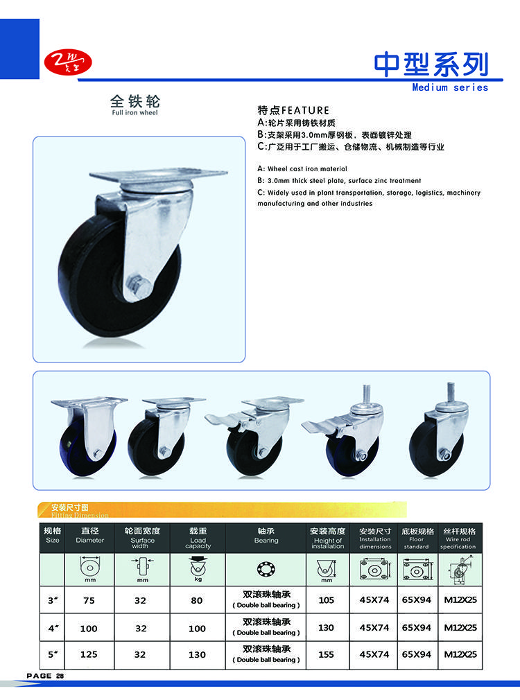 | 类型 | 中型全铁轮 |