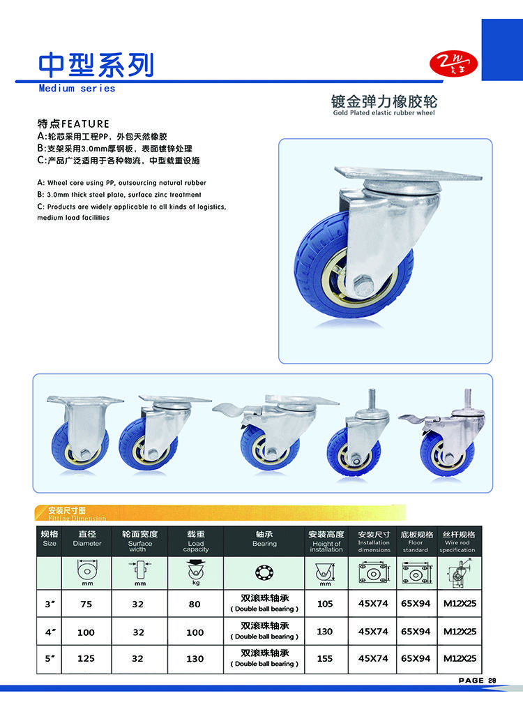 | 功能 | 万向脚轮 定向脚轮 刹车脚轮 |