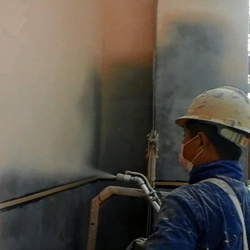 9、喷涂前,应将受喷面积用水渗透;喷射时喷头尽量垂直与受喷面(距离可根据喷涂效果自行调整)分层均匀喷涂,并和收平工序协调进行。墙面过干或喷涂后时间过久会严重影响收平效果,要改变工艺。
