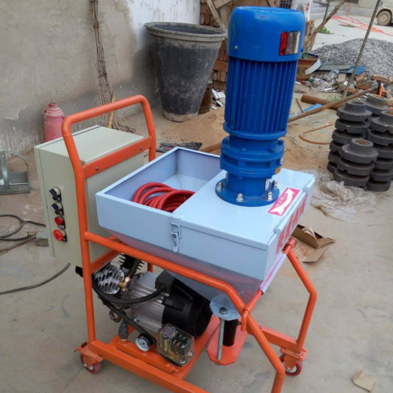 3、接好输送软管及喷头,向料斗加入清水5L,启动电机将清水泵出,以湿润料斗,泵体及输送软管,将水大部分泵出后即停机。