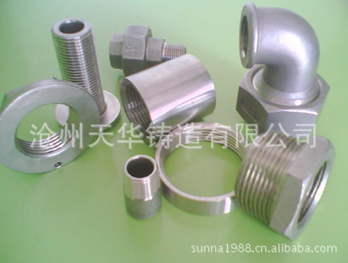 沧州天华精密铸造有限公司,公司总投资2000万元,职工人数120人,中**技术人才30人,是国内知名的硅溶胶熔模精铸企业。公司投资400万元引进了先进的硅溶胶铸造工艺技术,高精度数控机床和**先进的光谱直读分析仪等检测设备。产品质量得到有效保证,并通过了ISO9001质量管理体系认证。公司年生产不锈钢毛坯1000吨,机加工能力600吨。目前我公司生产的产品已在航空、航天、船舶、石油、化工、医药、汽车、家庭、五金、建筑机械等行业得到了广泛的应用,其中航空航天产品的复杂精密程度已达到国际先进水平。主要产品销往美国、日本和欧洲等**和地区。可承接来自客户的各种加工。能生产的产品标准有API、ANSI、BS、DIN、JIS等各种标准,材质主要有304(CF8)、316(CF8M)、304L、316L、WCB等。