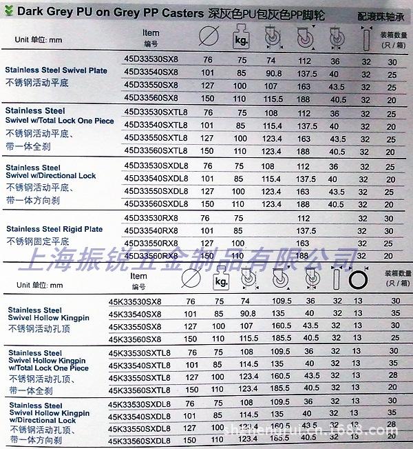 | 轴承:可选装不锈钢轴承 | 转向:万向脚轮 |