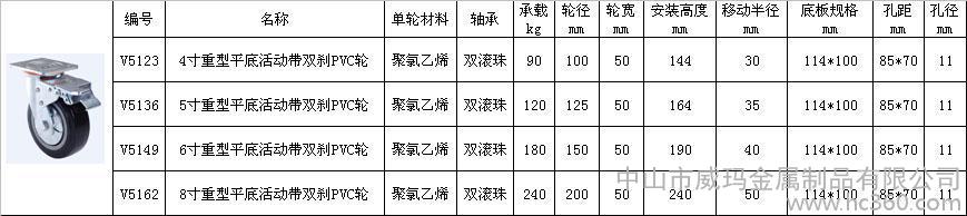 承重:4寸载重90KG/只,5寸载重120KG/只,6寸载重180KG/只,8寸载重240/只
