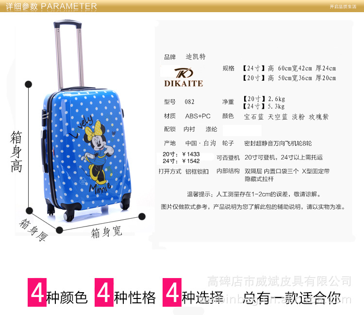 供应威斌PC082密封超静音万向轮8轮 旅行箱