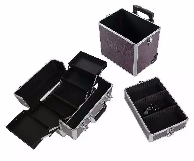 该款铝箱的整体结构:首先这款铝箱是立体长方形三层组合化妆箱**上面的一层是一个单独的整体完整小箱子,在携带中可以取下单独使用,箱子内部设计的隔断和升降托盘两格,化妆工具可以分类存放,可以手提 可肩背,第二层为内里隔断托盘盒,可以存放一些大的物件**一层为主箱体,空间很大,可以放一些更大物品!非常方便! 该款箱子通过数十道工序,选用**的材质,专业的技术造**精湛的品质,服
