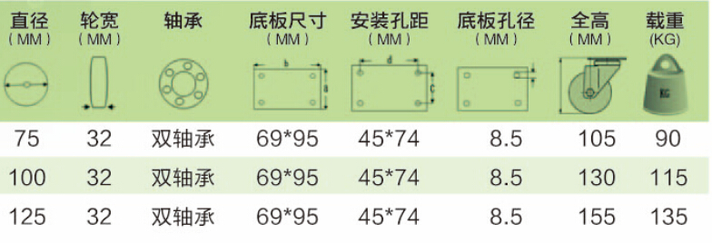 中型黑PU双轴-万向刹车-3 | 75(3寸) | 12.2 |