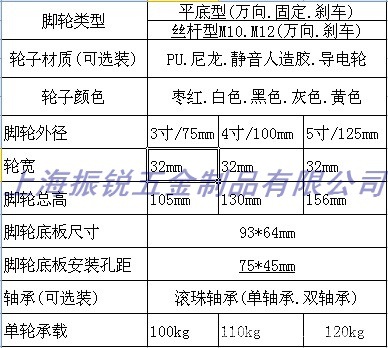 规 格: 平底(万向.固定.刹车)螺杆M10.M12(万向.刹车)
