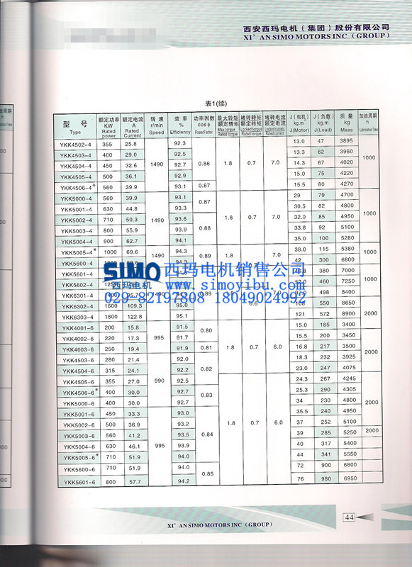 六、YKK5602-4 1250KW 10KV 西玛牌高压三相异步电动机订货注意事项