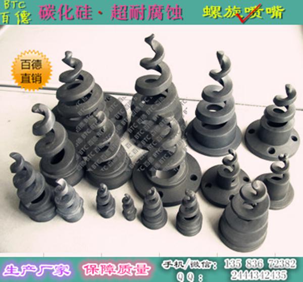 碳化硅螺旋喷嘴工作原理,螺旋喷嘴是众多喷嘴中**有特色的一种。随着连续变小的螺旋体,浆液不断经螺旋线相切和碰撞后改变方向成片状喷射成同心轴状锥体,不同层椎体喷射面流线与喷嘴轴心的夹角逐层减小,而且液体在从进入喷嘴腔体到出口的通道内均没有受到任何阻碍。且在很低的操作压力下仍具有很高的吸收效率,获得了脱硫系统的普遍认可。