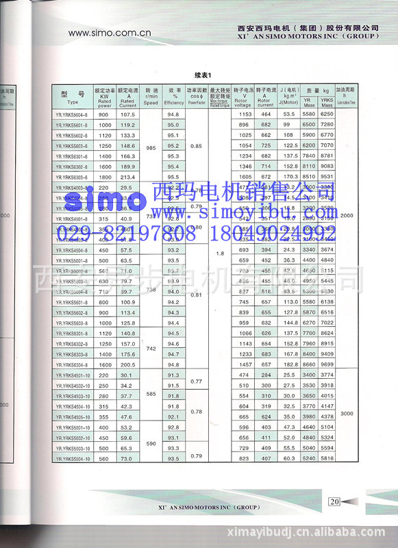 三、西玛电机YR系列YR5003-10 500KW 6KV 590R高压电动机产品订货须知(用户订货时须注明如下要求)