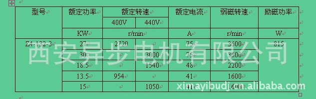 Z4系列直流电机的功率范围由1.5kW至840kW,额定转速有3000、1500、1000、750、600、500、400、300、200r/min共九种,励磁方式为他励,励磁电压为180V,除上述规定的等级外,根据具体情况和用户的需要,可派生出其他的功率、电枢电压、转速及励磁电压值。