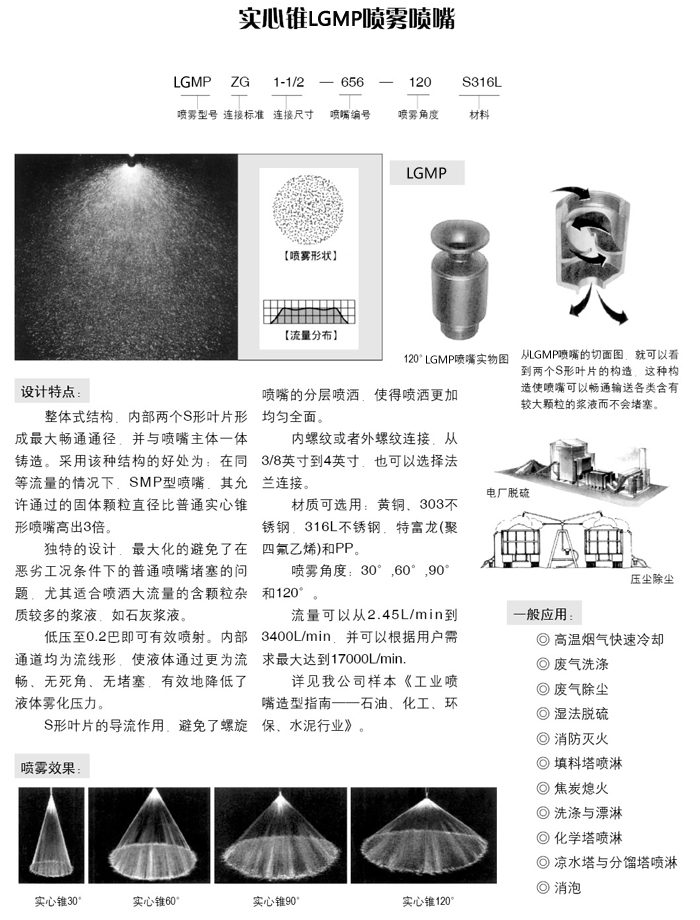 2、独特的设计,避免了在恶劣工况条件下的普通喷嘴堵塞的问题,尤其适合喷洒大流量的含颗粒杂质较多的浆液,轻松输送污浊、多块状物质的液体,如石灰浆液。