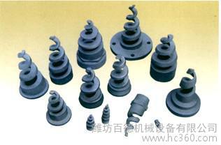 碳化硅脱硫喷嘴是火力发电厂、大型锅炉,脱硫除尘成套装置的关键部件。该产品具有高强度、高硬度、抗强烈腐蚀、剧烈磨损、耐高温等优良的性能,在恶劣的条件下有超长的使用寿命。 我公司生产的反应烧结碳化硅脱硫雾化喷嘴,喷雾液滴分布均匀、流道通畅,无阻塞现象,完全代替进口产品,填补了国内空白。目前有螺旋型、旋流型、液柱型三大系列几十多个品种,已应用于多家火电厂和大型锅炉的脱硫除尘装置中,运行状态良好