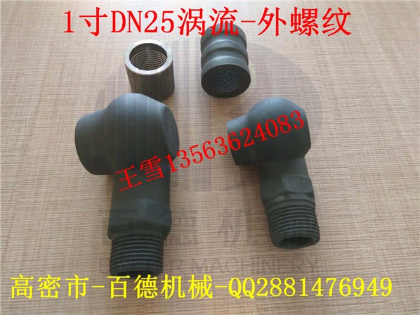 空心锥切线型喷嘴是石灰石浆液从切线方向进入喷嘴的旋涡室内,然后从与入口方向成直角的喷孔喷出,双空心锥切线型喷嘴是设计两个喷孔,在吸收塔内,一个喷孔向上喷,一个喷孔向下喷,或者向同一个方向喷淋,该喷嘴允许通过的颗粒直径为喷孔直径的80%-**,也可以设计成上下两个喷孔流量不同,如70%向上喷,30%向下喷