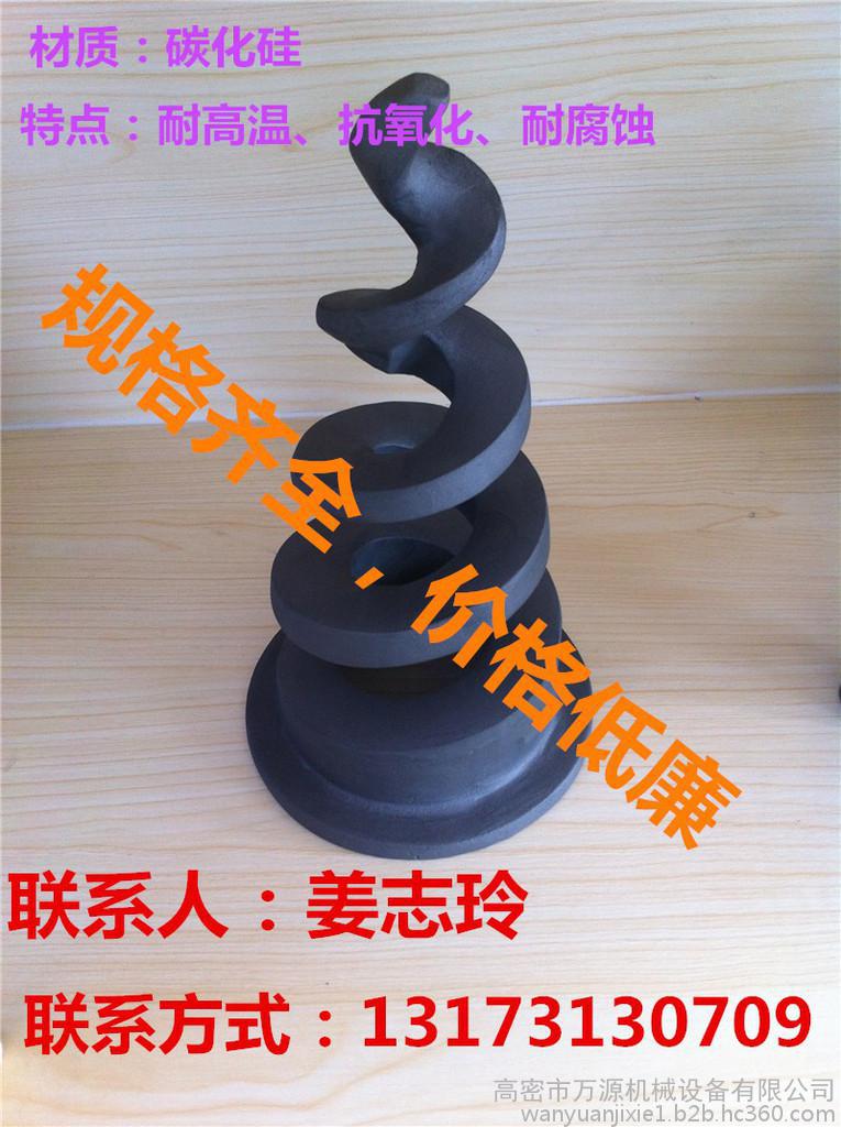 碳化硅螺旋喷嘴是众多喷嘴中**有特色的种。随着连续变小的螺旋体,浆液不断经螺旋线相切和碰撞后改变方向成片状喷射成同心轴状锥体,而且液体在从进入喷嘴腔体到出口的通道内均没有受到任何阻碍。且在很低的操作压力下仍具有很高的吸收效率,获得了脱硫系统的普遍认可。