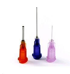 它们可提供 0.25"、0.5"、1" 和 1.5"(长度),内径范围为 0.060" 至 0.004"。每箱 50 个针头。