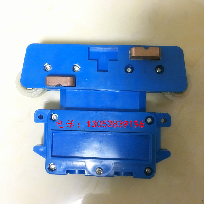 图片中集电器为四级,正面、背面分别有两个碳刷,适合于1-20吨单梁行车用。配套的滑触线为最常用的57(宽)x67(高)管子系列。每台行车上配套2只,避免起重机集电器碳刷磨损后导致的缺相运行。