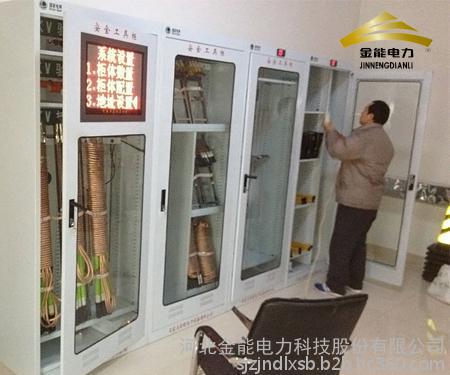 全智能工具柜一般是组合柜,三个工具柜或三个工具柜以上一组,每个工具柜内安有多个探头**台柜子上有一个大的LED显示屏,可以随时显示柜内温度湿度以及柜内每种安全工器具的试验周期,还显示使用中绝缘工具的使用数量和编号,绝缘工具拿出使用时柜内开启识别系统,自动监视绝缘工具使用情况,绝缘工具复位后,自动关闭显示窗口,恢复工器具试验周期**状态。全智能工具柜具有对绝缘工具进行标识和分类管理的功能,能够识别工具是否放错了位置,并提醒工具检验时间。全智能工具柜微电脑控制,数控兼容,内采用冷凝型除湿机,类似小型空调,控温除湿,保证绝缘工具使用时更安全。