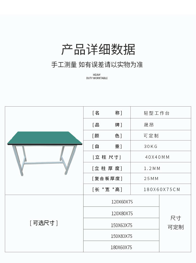 类型:轻型工作台