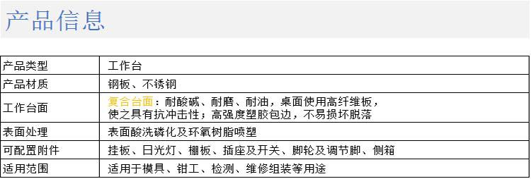 c. 工作台采用**冷板精加工制作而成坚固的工作桌框架,牢固平稳、可使工作桌承重1000kg,且多种工作桌面选择项,可配合不同使用要求。