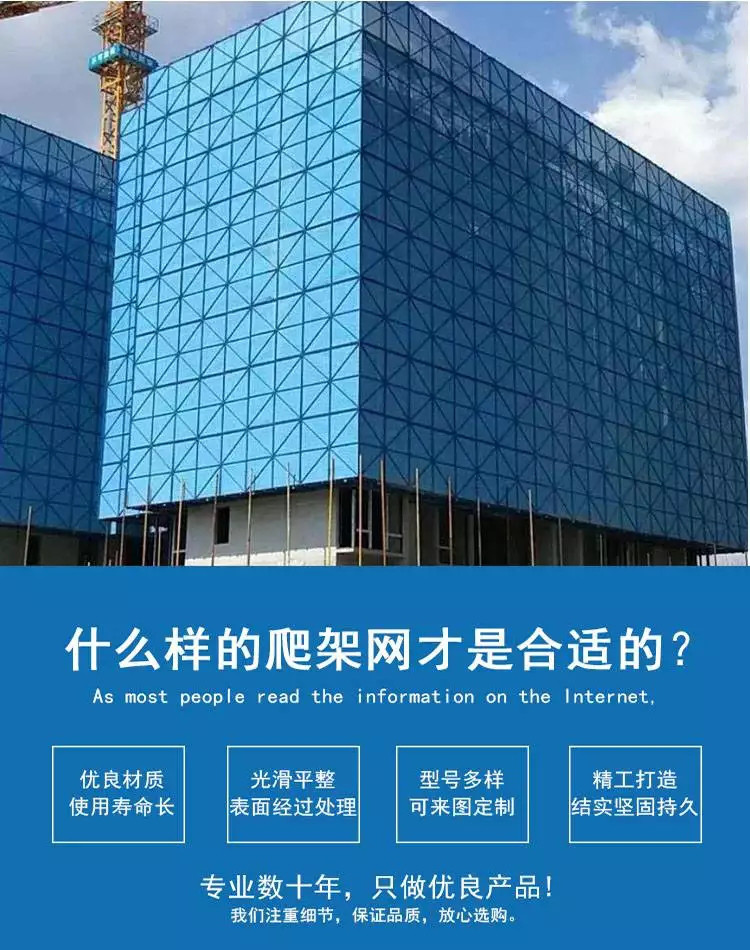爬架网是指搭设一定高度并附着于工程结构,依靠自身升降设备和装置,可随工程结构逐层爬升或下降,具有防倾覆