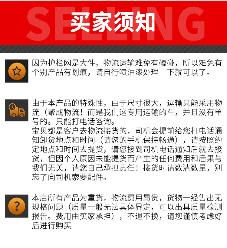 选择低碳钢丝,编焊而成;网格结构简练、便于运输、安装不受地形起伏,特别是对于山地、坡地、多弯地带适应性强。