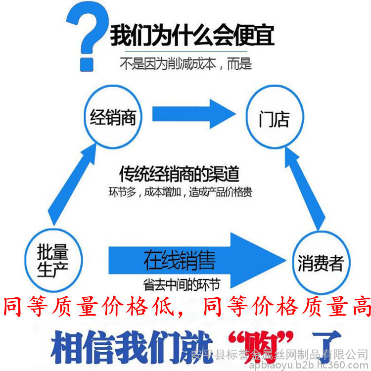 我公司主要产品有:黄铜网、磷铜网、紫铜网、不锈钢网、304金刚网、不锈钢窗纱等。拥有大型全自动不锈钢丝网生产设备,执行ISO9001质量管理体系进行生产,产品均达到出厂标准,我公司本着 "以质量求生存,以信誉谋发展”的经营理念,年产280万平方以上,常年备有现货资源,可为各地经销商和施工单位提供成套的铜网使用技巧和售后服务。