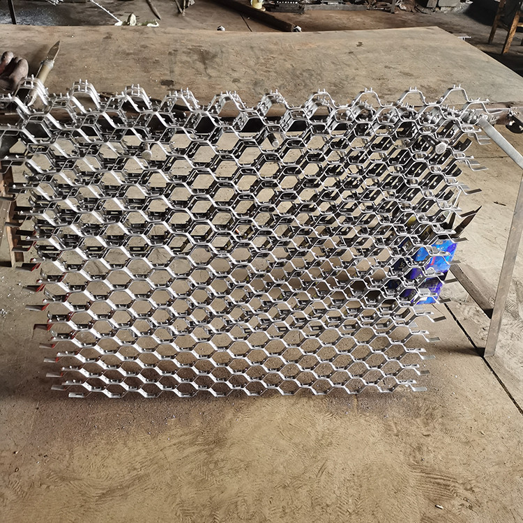六边均有孔相互联通,易弯曲弧度,点焊在壳体内壁后,浇上耐火骨料,可增加使用寿命数倍,而且耐火材料不会剥落,使用寿命长。