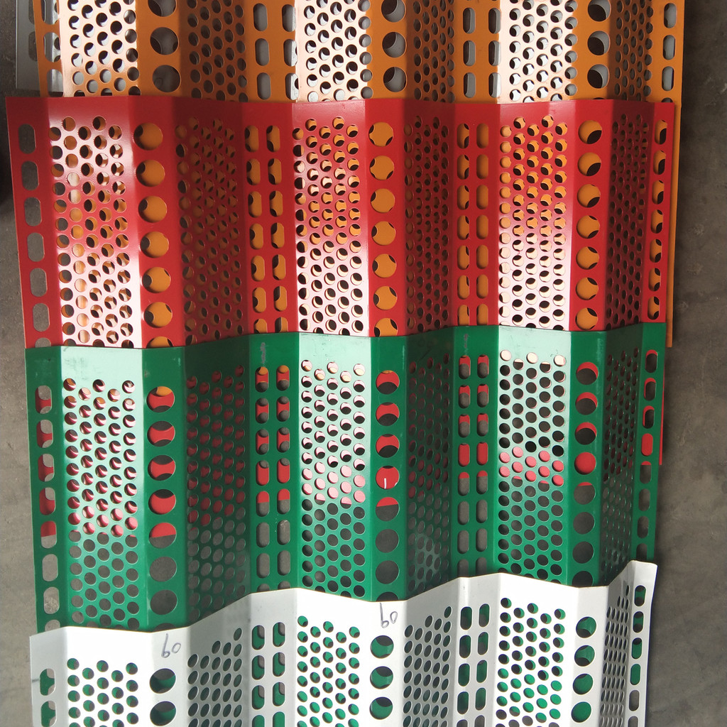 防风抑尘网也称作挡风墙,防风网,防尘网。此产品采用金属原材料经机械组合模具冲孔、压制、喷塑而成,具有强度高、韧性好、抗弯曲、抗老化、抗阻燃、耐高低温、耐酸碱、承受弯曲变形能力强等优良性能;经过特殊配方和工艺制作,可根据需要制成各种厚度、颜色,具有使用寿命长、色彩鲜艳不易褪色等特点;综合抑尘效果良好,优于国内外同类产品。防风抑尘网不仅外形美观,维护成本低并且具备防火,防盗等优点;完全避免了以往表面覆盖、喷淋技术、全封闭几种措施反复投资、耗资巨大、受场地和作业要求限制抑尘效果不佳的问。此项技术造价低、设置灵活、安装简单。一次投资,长期受益。挡风抑尘墙设置后不仅使污染严重的地区环境得到有交的改良,而且实施挡风抑尘墙的煤场每年还节省煤数千吨,在取得良好社会效益的同时又获得了**大的经济效益,美观整齐的挡风抑尘墙也成为这些地区一道怡人的风景线。