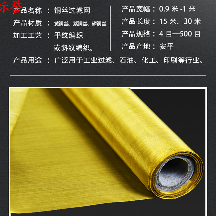 生产工艺:铜丝经纬十字交叉编织而成,网孔为方孔。