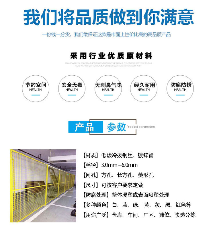 车间隔离网:也叫仓库隔离带 车间防护网1 .材质:Q235低碳冷拔钢丝或者电