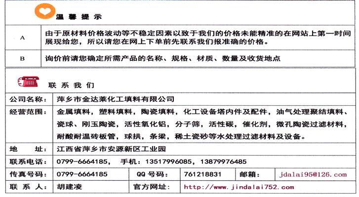 | 厂商 | 萍乡市金达莱化工填料有限公司 |