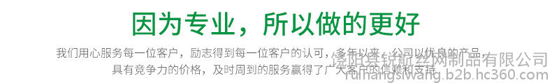 饶阳丝网恪守“以质量求生存,以信誉求发展”的经营原则,创产品质量,树公司信誉,根据客户的发展需要,不断地提供经济实用的产品和高效完善的售后服务,携手新老用户共同发展。