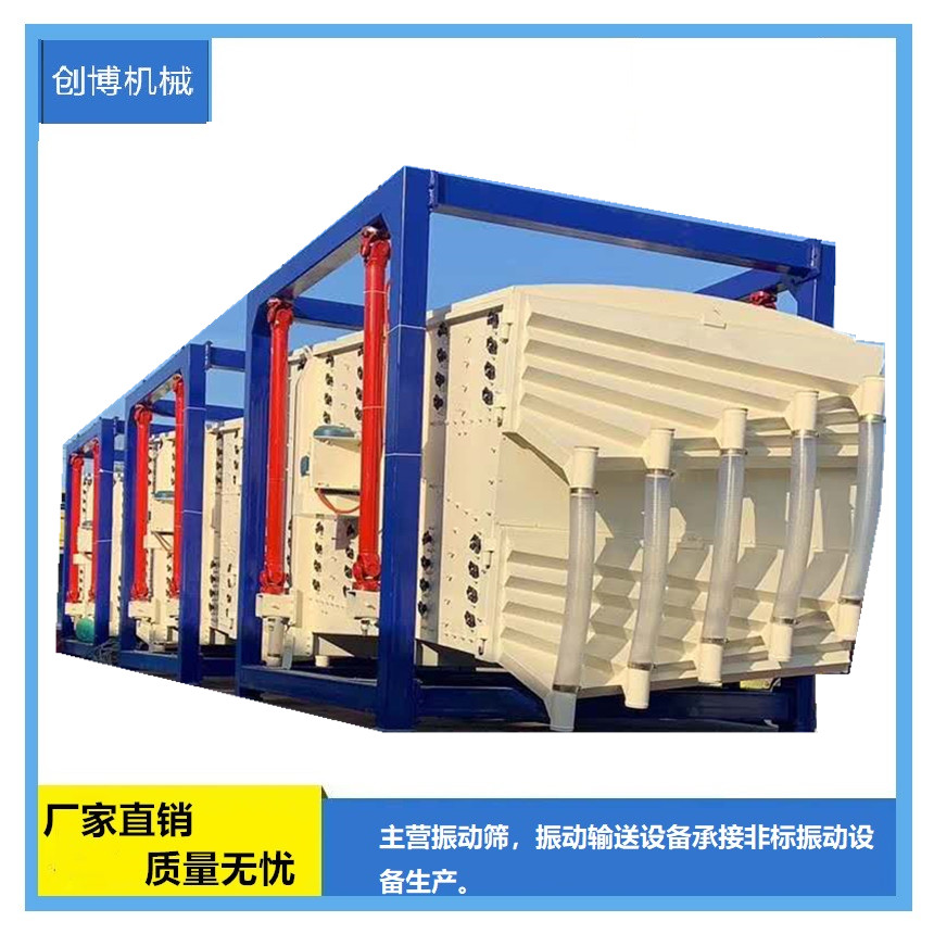 创博机械2040摇摆筛纺织摇摆筛生产方形摇摆筛耐火材料方形摇摆筛型号齐全 在相同尺寸下,圆面积比其它形状的面积都大,因此其筛分有效面积**大,使燃煤能充分筛网,因而单位时间内筛分量**大。又因其结构简单,布置方便,技术新颖而成熟等特点,极易大型化。5、自身能耗小 筛板开孔段的长度L除了需要考虑筛分效率外,还要考虑筛孔布置和筛板制造的方便,一般取(3-5)D(D- -筛筒体的直径);开孔筛板的长度,可以垃圾在筒内的运动时间,筛分效率。但已有实践证明,过分筛分长度,筛分效果并不显著,而且还增大面积,投资。进口的缩口长度1.和托轮的宽度(L=+L)由设备专业根据支撑的需要和具体的结构要求确定,但不易太长,设备的面积。出口盲板的长度Ls 由工艺布置需要确定,主要考虑卸料斗和输送皮带改向滚筒 轴承采用SKF轴承,电机采用防爆电机(防爆电机要求均采用佳木斯电机股份有限公司或南阳防爆集团有限公司或原装西门电机产品)。减速机采用浙江倍力硬齿面减速机(或同等其他品牌产品)。方形摇摆筛是为了产量大、高密度的筛分要求,而特殊设计的一种多用途新型筛分设备。由于结构和工作原理的独特性,使得摇摆筛适用于对微粒状物料和微细粉物料的筛分处理。其全新的设计理念和独特的结构,使之成为接近手工筛分作业的筛分设备,巧妙的把筛--(平面圆周运动)、簸 --(向上抛物运动)结合起来,可通过经向角和切向角,改变物料在筛面停留时间和运动路线,达到良好的筛分效果。它成功的模拟了人工筛分运动的有效原理 (筛分精度、效率、筛网寿命均是常规圆筛的5-10倍)。