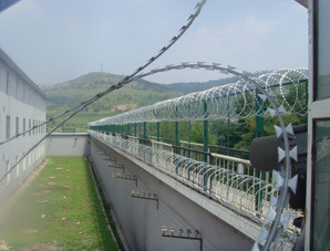 又称监狱护栏网或监狱隔离栅,主要是采用高强度的刀片刺网与普通防护网的结合,由V型支架立拄,加强型焊接片网,安全防盗连接件和刀片刺网组成.刀片刺网是一种新型防护网,由锐利尖角镀锌钢板或不锈钢薄板做刀片,钢丝做芯线组合而成的防护器材.