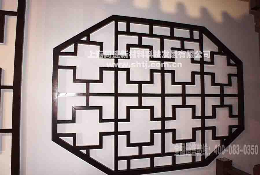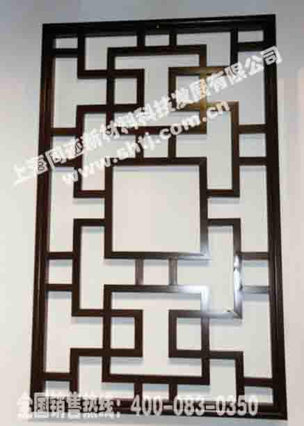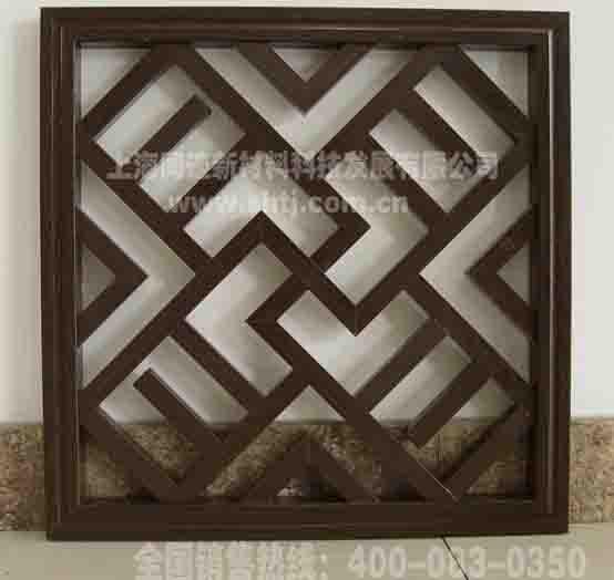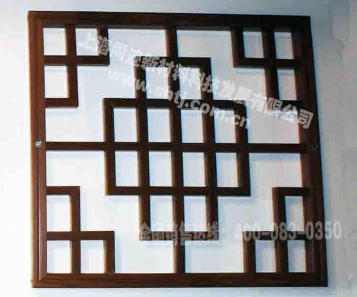 窗格|花格隔断的水印氟碳木纹铝型材具有突出的耐候性、耐磨损、耐腐蚀性等特性,且具有硬度高、不易变形、仿木真图案不褪色、不脱落等特点,适合室内外各类场合使用。本产品填补了国内以金属材料替代原木建筑装饰的空白,可以提高建筑、装饰、园林及市政设施的档次,带动建筑、装饰、园林及市政等行业环保材料的发展。同时,可以节约大量自然资源(每吨水印氟碳木纹铝型材可替代木材3 立方米以上),为保护生态环境作出积极的贡献,并能满足人民群众物质生活日益提高后对自然美感的精神追求,为创造人类社会与自然生态和谐发展,提供了完美的建筑装饰材料——水印氟碳木纹铝型材。仿古窗格,金属窗格,镂空窗格,中式窗格,装饰窗格,防腐窗格等中式仿古窗格