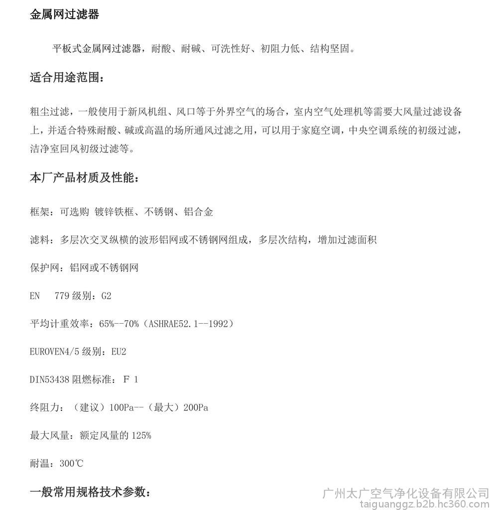 | 产品别名 | 金属网初效过滤器 |