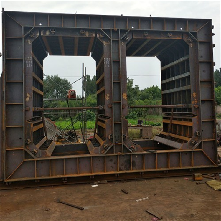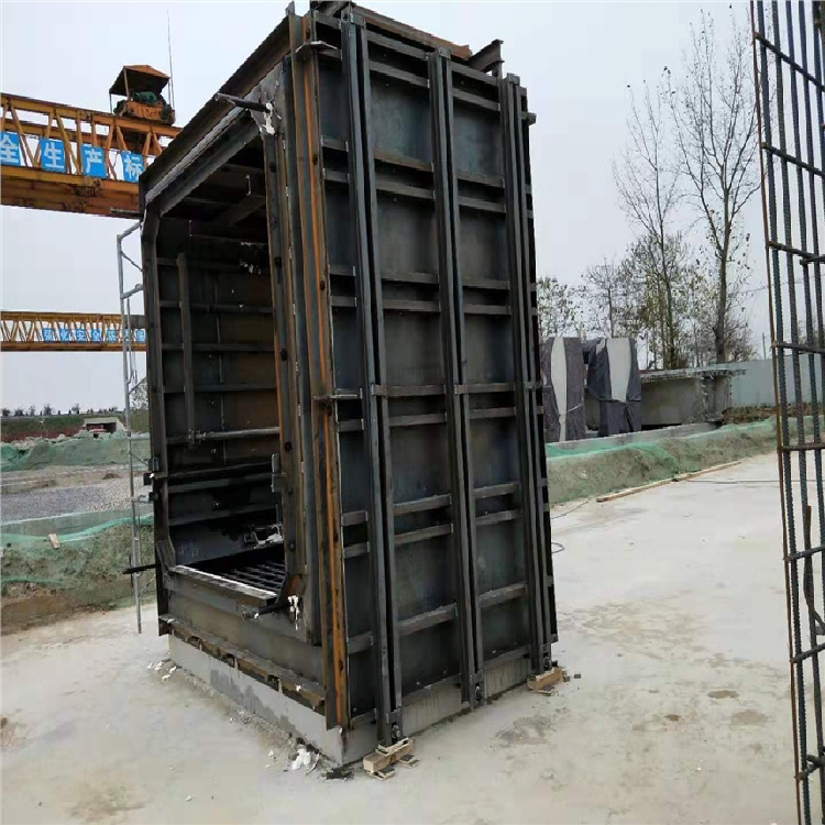 箱涵钢模具是用于向钢筋构件中浇筑混凝土的工具,一般的具体操作步骤为:先在台模上固定钢筋构件,接着将缠绕有钢筋构件的台模置入箱涵模具中,然后将台模与钢筋构件分离,箱箱涵模具中浇筑混凝土以制成混凝土件。现有的箱涵模具一般为结构固定的箱体,体积大,难以搬运,从而使得箱涵模具只能够在特定的位置进行工作,从而加大地限制了箱涵模具的使用。箱涵钢模具根据工程施工需要,如穿越街道十字交叉口以及通过不可拆除的建筑物的特殊路段,采用非开挖施工方法,才能免除对交通、建筑、经济和环境保护等方面带来的影响。目前,非开挖的施工方法**是顶进施工,而顶进施工**必须采用预制方涵才能实现。