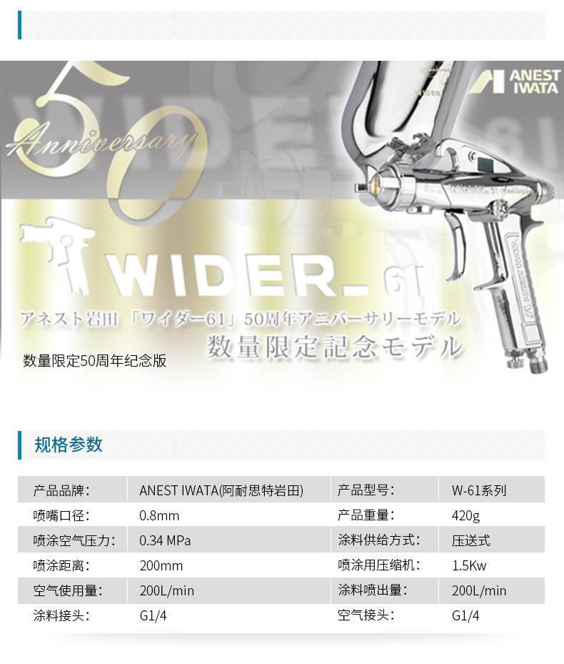 冠品一级代理ANEST IWATA/日本岩田喷枪 W-61-0压送式式手动喷枪