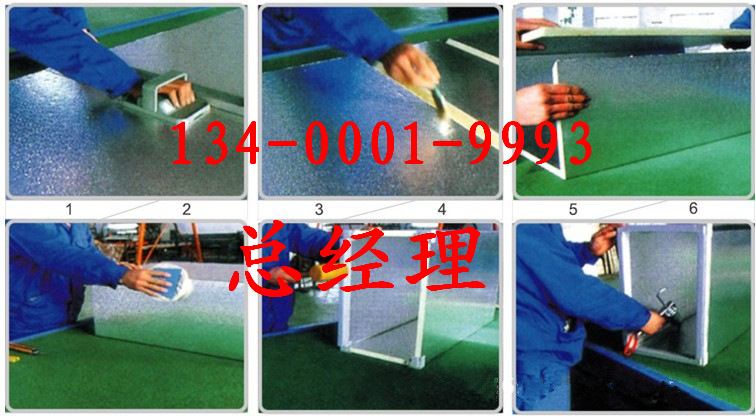 酚醛铝箔复合风管的重量轻,大约为1.4 kg/m2,而镀锌钢板风管(0.8mm厚)和玻璃钢风管(3 mm厚)的容重分别为7.08 kg/m2和15~20 kg/m2,这就可以大大减轻建筑的负荷,且对风管的安装极为有利。安装时只需每4 m左右设一个支架,便可有足够的支撑力。这对支架、吊件等的承载力要求大大降低,使得运输和安装非常方便。