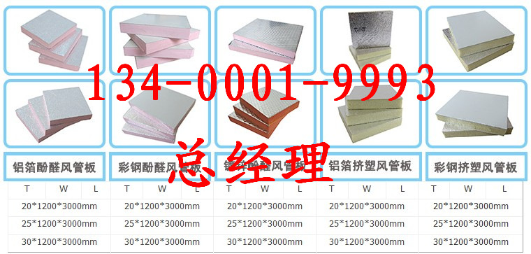 规格 双面铝箔酚醛板,单面彩钢酚醛板,双面彩钢酚醛板