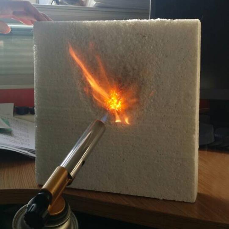 将无机防火材料均匀渗入聚苯板,有机材料与无机材料发生聚合固化反应,聚苯颗粒周围包裹着有防火性能的特殊无机材料结晶体,填充均匀,隔绝空气,从而彻底改变了原聚苯板遇火收缩,熔滴的缺陷。