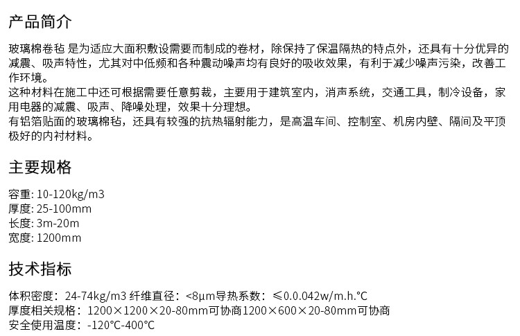 | 种类 | 保温棉 |