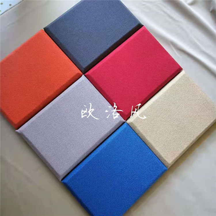 5、50mm软包布艺吸音板|卡拉OK吸音材料|吸声材料工厂 具有较强的保温、阻燃、防霉防潮、质轻、耐用、防尘、装饰性强,施工简单