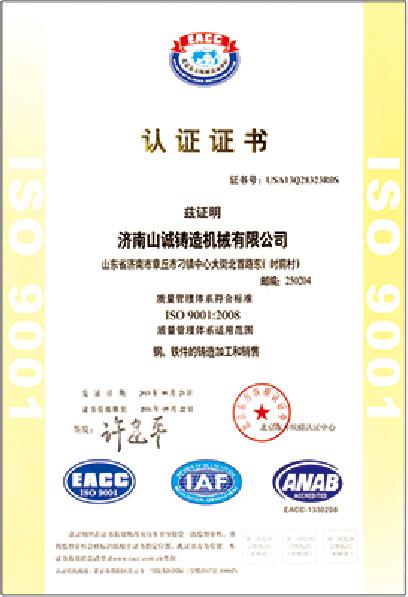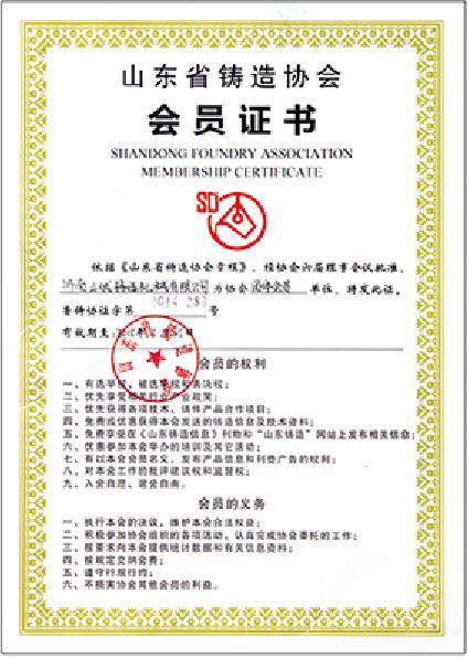 本公司已通过ISO9001:2000质量体系认证,2012年先后被“章丘市锻压铸造行业协会”“山东省铸造协会”吸收为会员单位,荣获“济南市重合同守信用企业”称号。